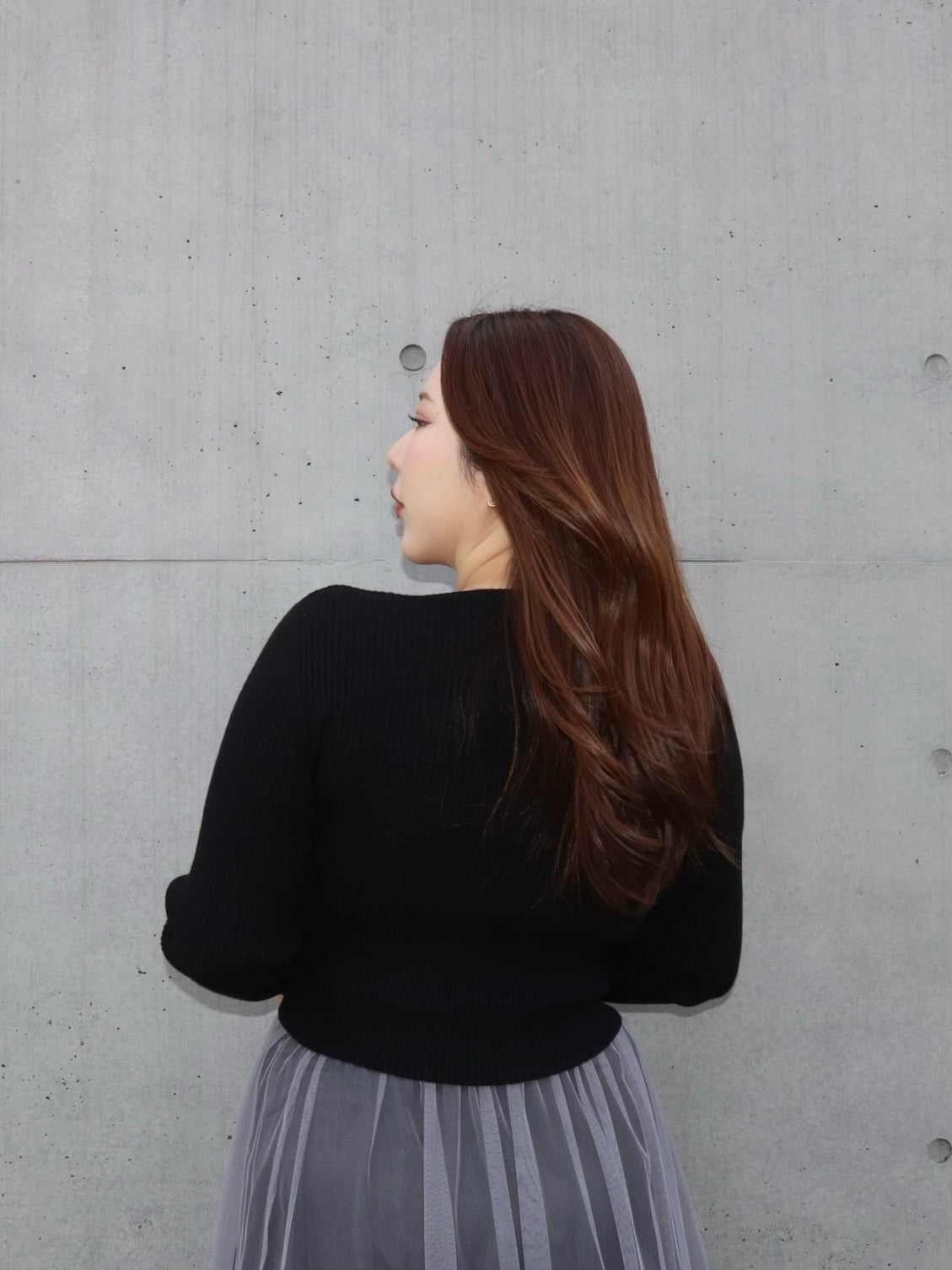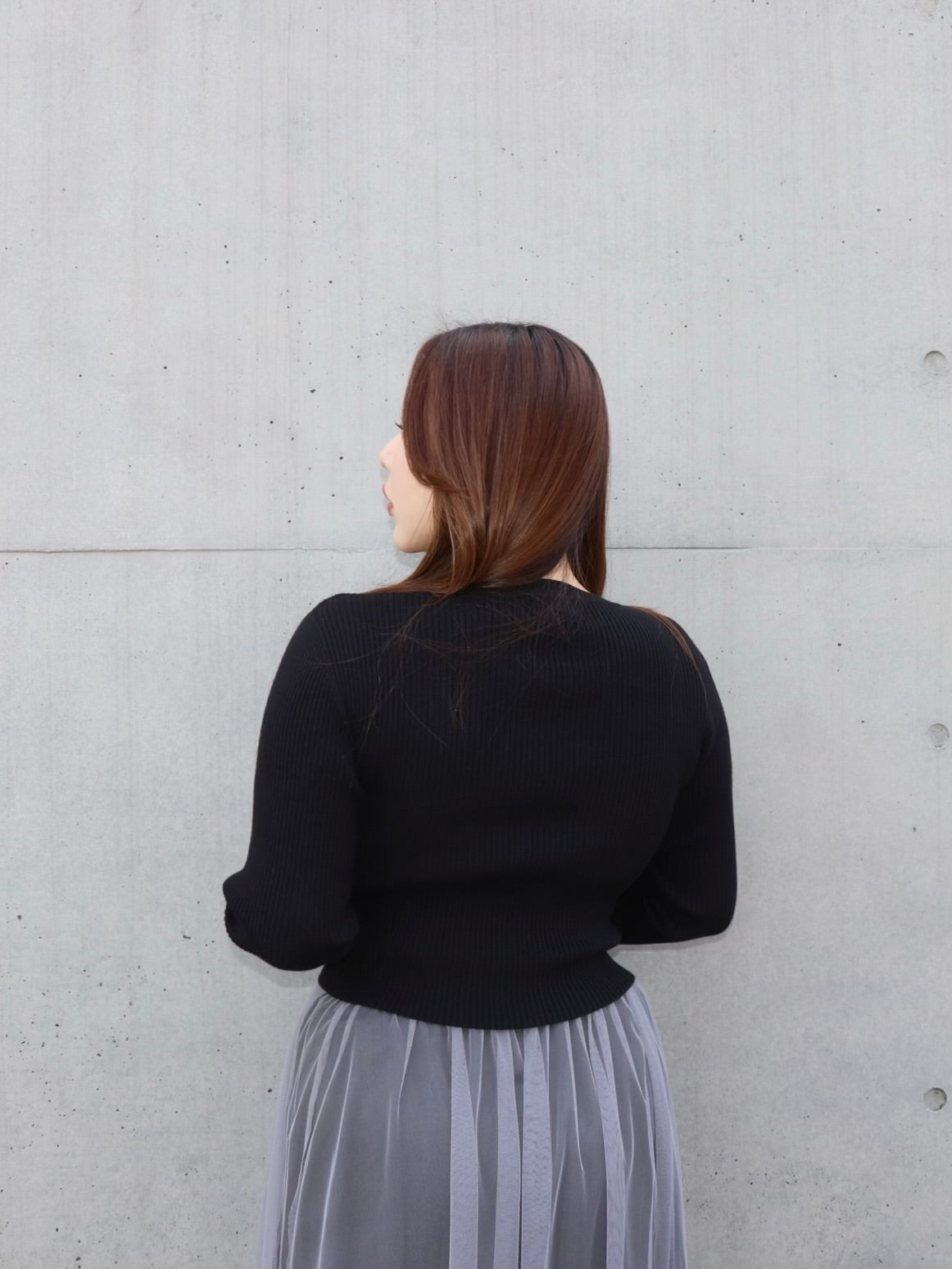 柔らかく良く伸びる糸を使用したリブニットプルオーバーです。